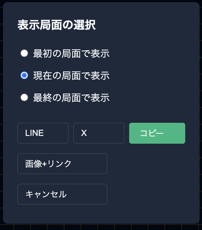 URLを開いたときにどの局面を表示させるか設定できます。